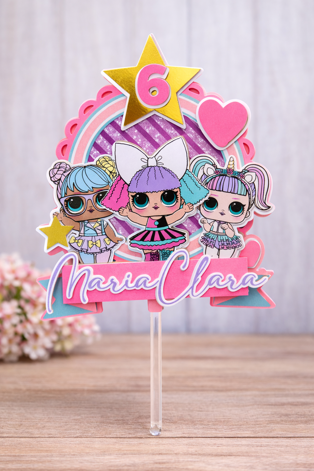 Haz que tu celebración se vea aún más especial con un cake topper personalizado inspirado en LOL Surprise.